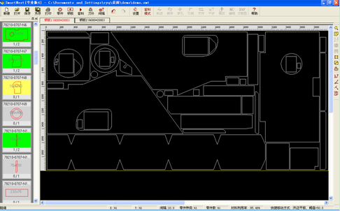 4、可以直接導入外部DXF/DWG格式的排料圖進行切割路徑優化和NC編程,并可將整張排料圖自動拆解成單個零件,從而利用本軟件對原排料圖進行修改或重新套料。