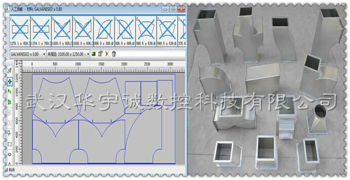武漢華宇誠(chéng)數(shù)控生產(chǎn)的通風(fēng)管道數(shù)控等離子切割機(jī),針對(duì)風(fēng)管展開(kāi)切割進(jìn)行了專門優(yōu)化。切割速度更快、切割精度更高、切割效果更好。并搭配專門的風(fēng)管展開(kāi)軟件,用戶只需選擇要切割的風(fēng)管類型,輸入相應(yīng)尺寸參數(shù),便可自動(dòng)排料、自動(dòng)生成加工程序,用戶直接用U盤(pán)在切割機(jī)上調(diào)入加工程序切割即可。